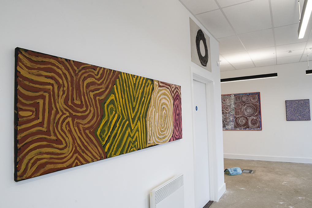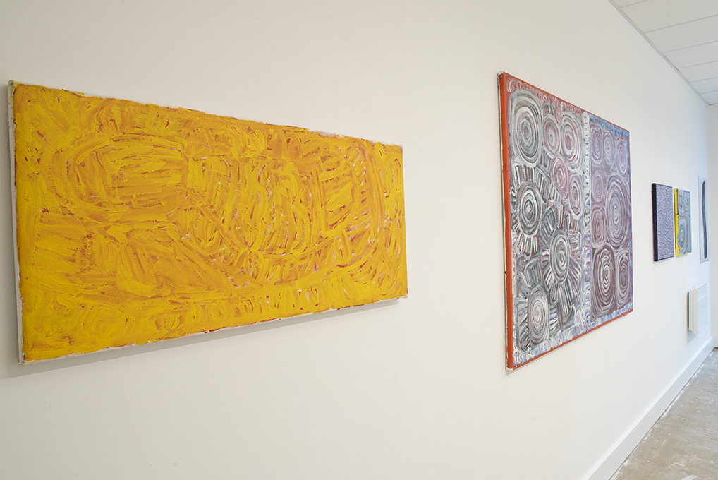 The exhibiting artists are all compelled to share their stories and the stories of their ancestors through the universal language of paint. What may strike the Western eye as abstract is to these artists representational. Each mark is a detailed code for a journey or a place to catch food; each colour is a memory, a feeling, a signifier of the seasons. These canvases and works on paper show three women with a deep understanding and love of country. We must take heed of this respect for nature and its cycles if we are to survive in a rapidly changing planet.