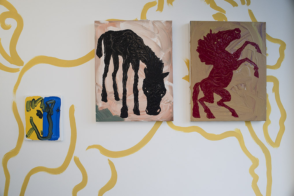 When first encountering Surman’s horse paintings, initially through Instagram, Liam Scully was instantly hooked by the vitality and freedom of the work and organised to visit the artists studio in Deptford, Southeast London. “I did not go to the studio with an exhibition in mind, as a painter myself I was more interested in seeing, in the flesh what looked to be like pretty good paintings”. It was only through this visit that Surman explained he is from Traveller descent, which perhaps made sense as to why he is such an extraordinary hand at painting these animals. Surman clearly knows his art history and his subject very well to be able to draw directly from his imagination, with a fluidity and freedom of a great painter. The very horses we see in his paintings are secured in the artists psyche from a rural British childhood, yet they are backed up by a lifelong commitment to art making.